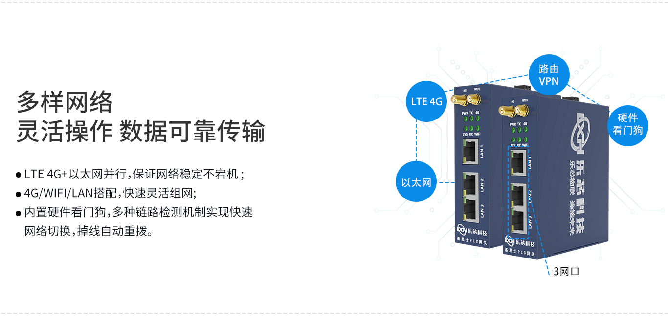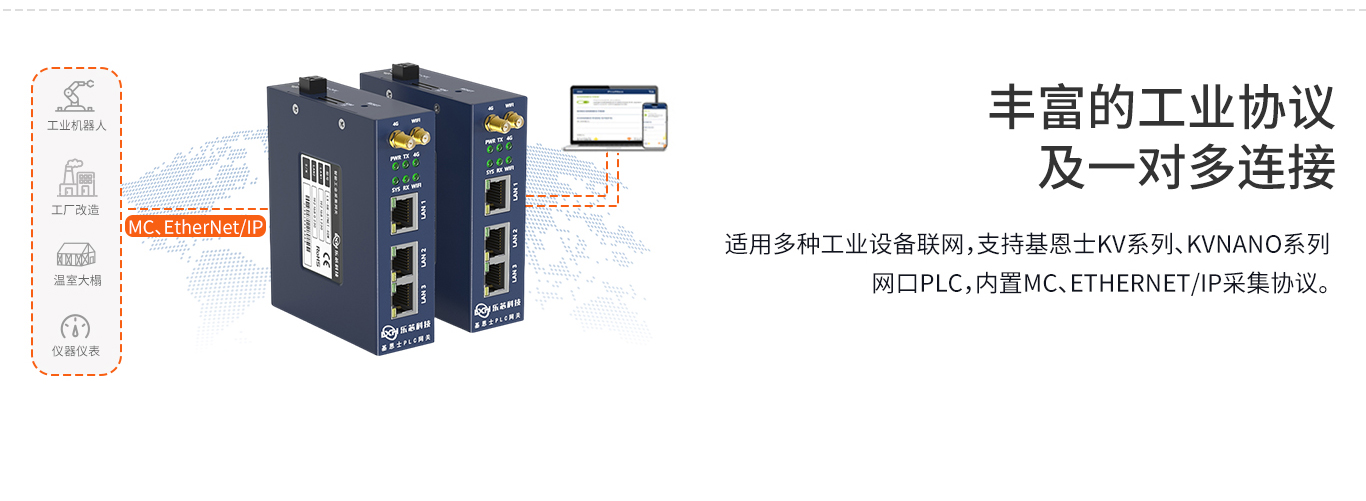 杭州乐芯科技根据市场需求推出了新一代的智能以太网数据采集模块,PLC 设备采集系列网关,支持Keyence(基恩士)PLC网关PLC系列数据采集协议,具备以太网、WIFI 4G网络,支持MQTT推送及OPCUA对接协议,支持云平台及企业管理系统MES对接。更好地满足物联网数据采集的要求和未来的物联网应用趋势。