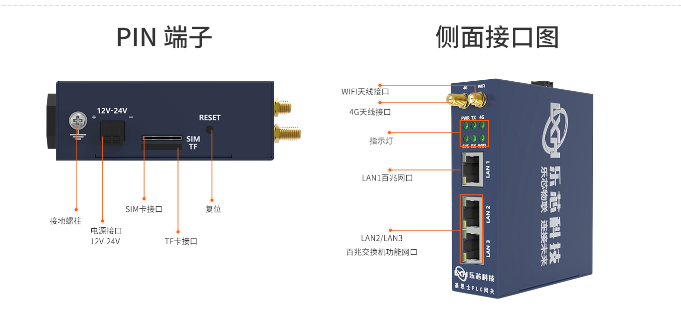4G网络 | LED灯快速闪烁:4G网络连接正常 LED慢闪且长亮:SIM卡已连接但网络未连接 LED慢闪烁且长灭:为SIM卡未正确连接或未注册成功 LED不亮:4G模块未供电或模块未启动成功 |