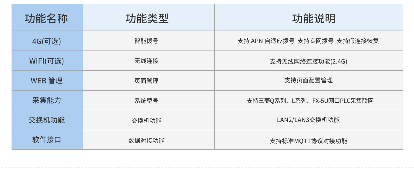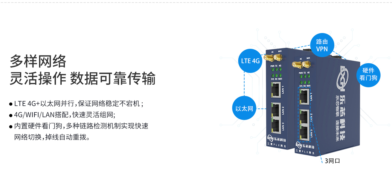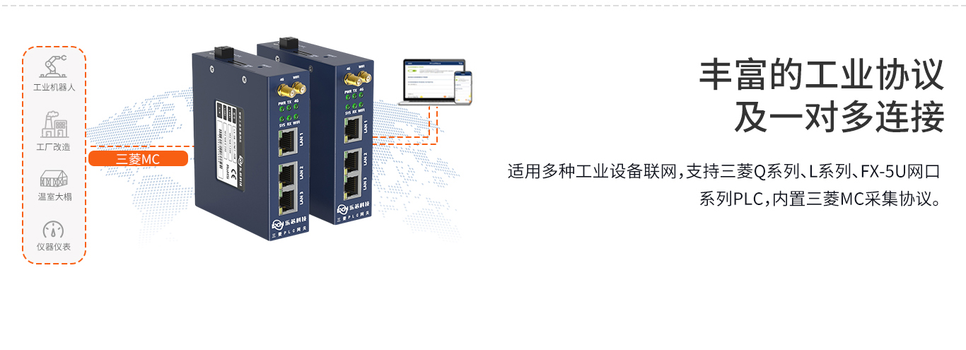 杭州乐芯科技根据市场需求推出了新一代的智能以太网数据采集模块,PLC 设备采集系列网关,支持Mitsubishi(三菱)PLC网关PLC系列数据采集协议,具备以太网、WIFI 4G网络,支持MQTT推送及OPCUA对接协议,支持云平台及企业管理系统MES对接。更好地满足物联网数据采集的要求和未来的物联网应用趋势。