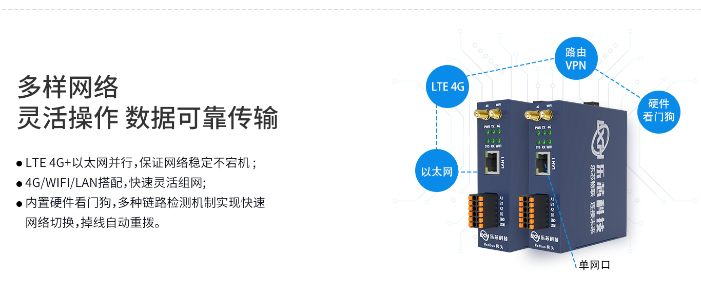 4G网络 | LED灯快速闪烁:4G网络连接正常 LED慢闪且长亮:SIM卡已连接但网络未连接 LED慢闪烁且长灭:为SIM卡未正确连接或未注册成功 LED不亮:4G模块未供电或模块未启动成功 |