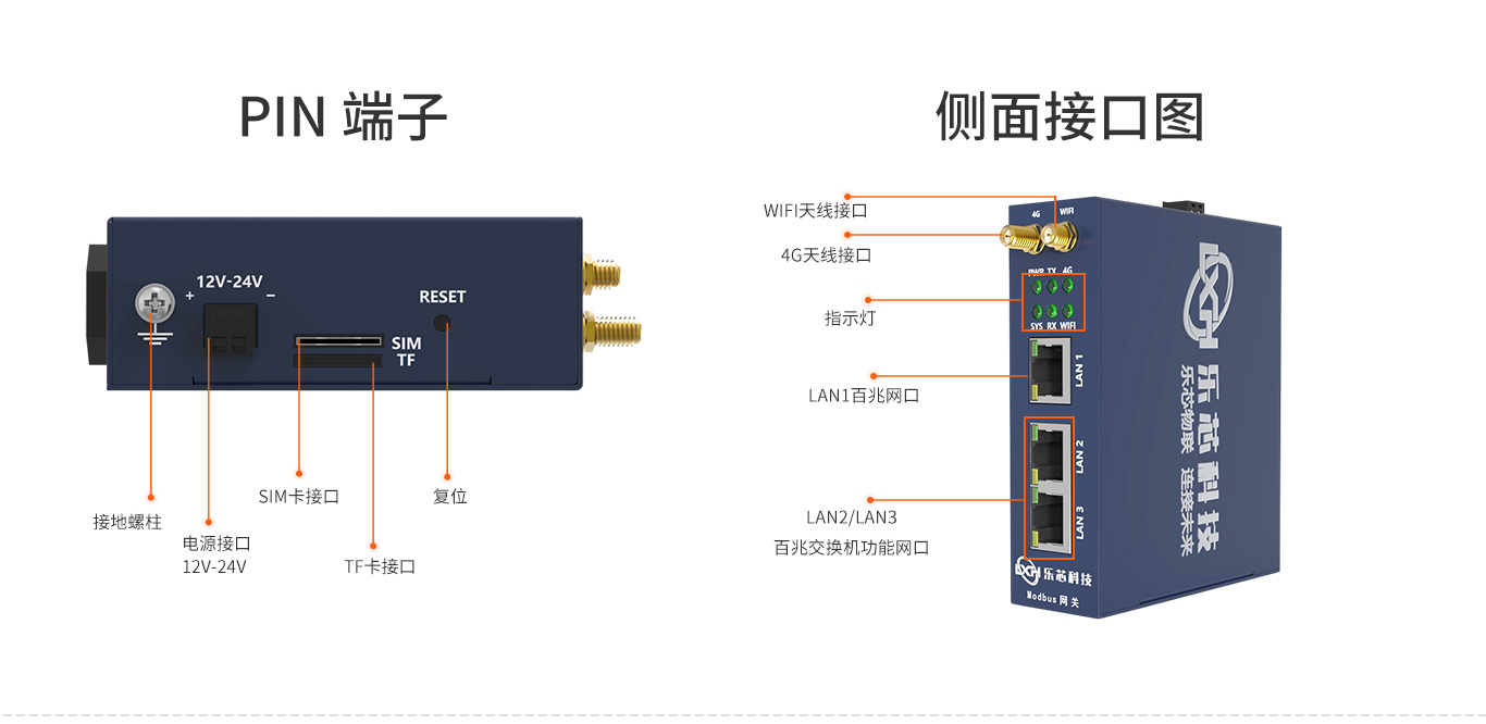 4G网络 | LED灯快速闪烁:4G网络连接正常 LED慢闪且长亮:SIM卡已连接但网络未连接 LED慢闪烁且长灭:为SIM卡未正确连接或未注册成功 LED不亮:4G模块未供电或模块未启动成功 |